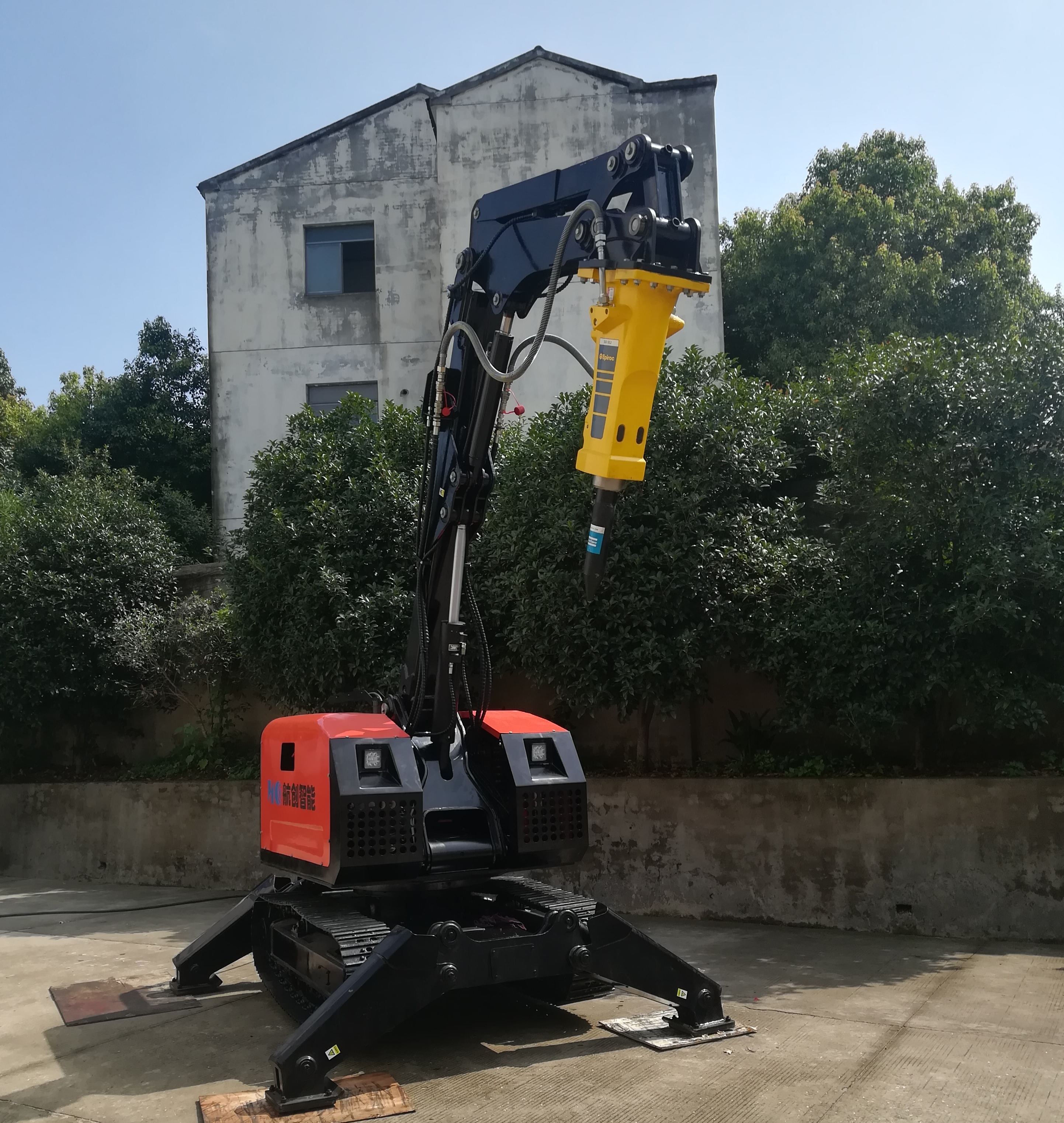 HCR系列破拆机器人是一种远距离遥控,液压驱动并具有精细化作业能力的大功率作业装备,配套末端柔性液压手腕及多功能属具,可替代人在有毒(污染)、易燃、易爆、易坍塌,强辐射等危险与恶劣环境中进行多方位、远距离控制的破碎、剪切、拆除等作业,广泛应用于冶金、建筑、水泥、核工业及矿山等行业,产品线覆盖1吨-12吨,柴电两种动力,十余种规格,并可根据客户需求进行定制。